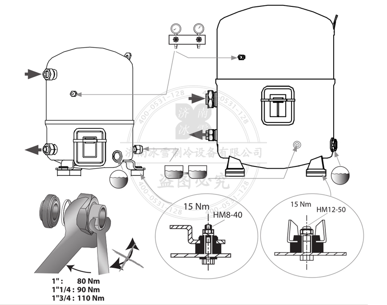 在貯存和運(yùn)輸過程中請(qǐng)保持壓縮機(jī)豎直狀態(tài)。
